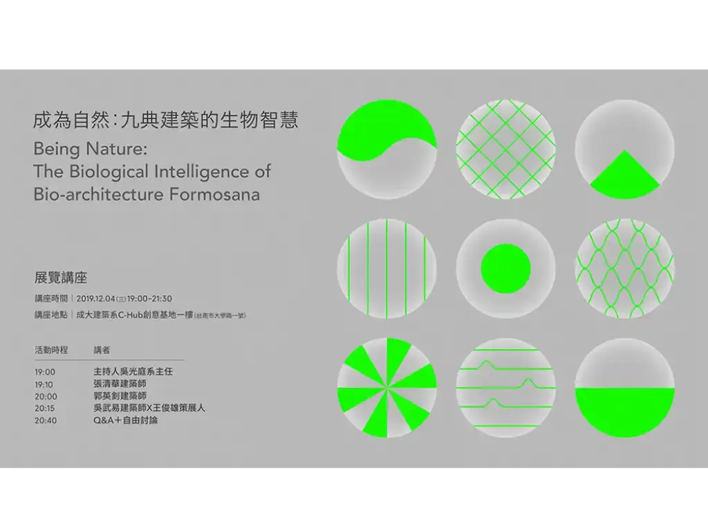 返回 展覽|成為自然:九典建築的生物智慧 2019-11-08 展覽期間:2019.11.08 -2019.12.14 開放時間:週一至週六 09:30-17:00 展覽地點:成大藝坊 地球上的自然環境運行超 過20億年,善用有限的資源創造出循環不息的生態系,人類與建築應是自然環境的一部分,與之達成一種永續循環的共生關係。 九典透過對自然生物的探討,擴大建築思考的範疇,善用科技的發展,將人文面向的創新更上一層,回應當前環境對建築專業的挑戰。 2019年是九典的20週年,張清華與郭英釗建築師,與九典百餘人的大家庭,希望透過這次的展覽,帶大家認識建築的生命如何被建構、解構,並依循生物演化的法則,讓每一個建築案,從對基地環境的回應、使用者情境的推衍,到對建築下一個生命週期的思慮,設計的活動成爲一種不斷自我修正、沒有終點的連續循環。 九典展覽小手冊 | ISSUU