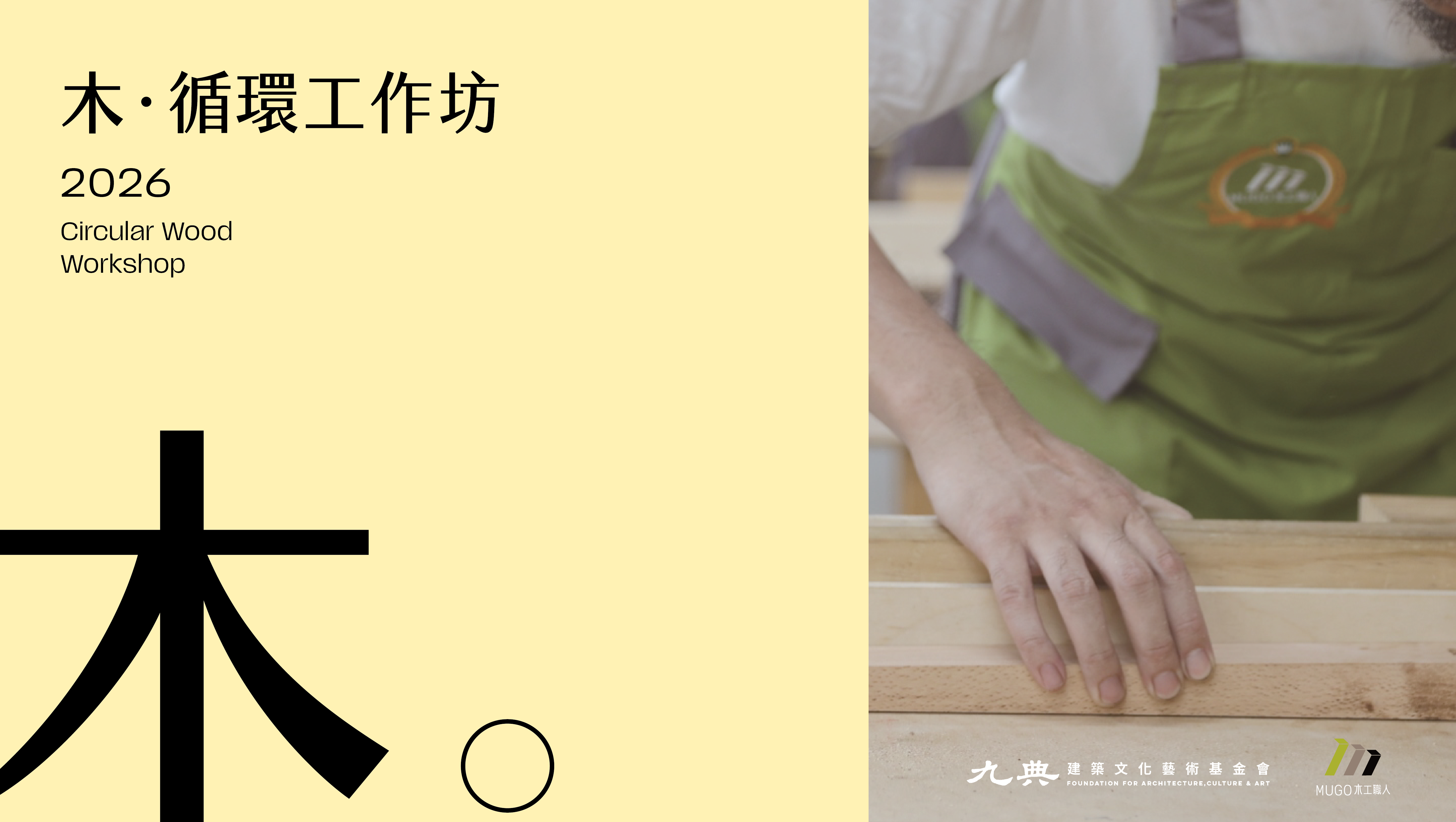 返回 活動 | 2026 木循環工作坊 甄選計畫開始 2026-04-07 延續首屆木循環工作坊的熱烈回響,九典建築文化藝術基金會今年再度啟動第二屆徵選計畫,邀請更多關注永續設計與材料再生的夥伴一同參與。 舊木不只是材料,而是還沒被完成的設計。在三週內,由專業老師一旁指導從基礎技術到重組創作,將一塊塊舊木轉譯成自己的作品。如果你也對「木循環的永續設計」感到好奇,現在就申請報名吧! |2026 木循環工作坊 課程日期|2026.07.13 - 2026.07.31 (每週一至週五 09:00-17:30) 成果發表|2026.08.01(週六)9:00 - 16:00 課程地點|木工職人教室(台北市北投區立功街82號,近捷運關渡站) 報名資格 | 20-40歲,對木工創作有興趣者,建築、工業設計、產品設計等科系在學、畢業或具相關工作背景者 課程費用 | 全額補助(價值新台幣50,000元/人,由九典建築文化藝術基金會全額贊助) 報名網址 | 請點此連結