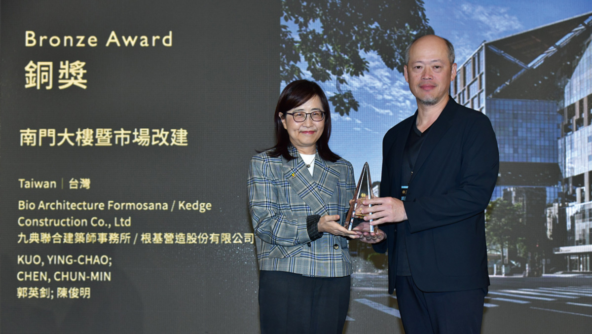 返回 獎項 | 南門大樓暨市場改建案 榮獲台北城市設計選拔 2025-11-28 台北設計獎於近日公布得獎名單,由九典與根基營造共同參與的「南門大樓暨市場改建案」榮獲台北城市設計選拔銅獎與廠商贊助獎! 有別於原本較為封閉的市場,設計團隊在建築的沿街面設置騎樓、增大帷幕玻璃及挑空空間,引入舒適的北向自然光線,創造內外明亮通透的空間。 為了改善傳統市場給人衛生條件不佳的印象,空氣品質改善是這一次的設計重點。設計團隊調整空調進排氣配置,引進外頭的新鮮空氣,除此之外,更設置靜電油煙處理設備及活性碳濾網,將處理後的廢氣引至大樓頂樓排出。 南門市場一直是高齡者消費的熱門地點,傾斜式招牌角度設計,幫助長輩一抬頭即能輕鬆閱覽。室內空間與指標色彩以暖色調為主,塑造友善親切的視覺感受,也易於視力較差者辨識;止滑、無障礙設計,則讓人通行安全無虞。 非常感謝相關單位及所有工程團隊共同努力! 深入閱讀: 南門大樓暨市場改建案