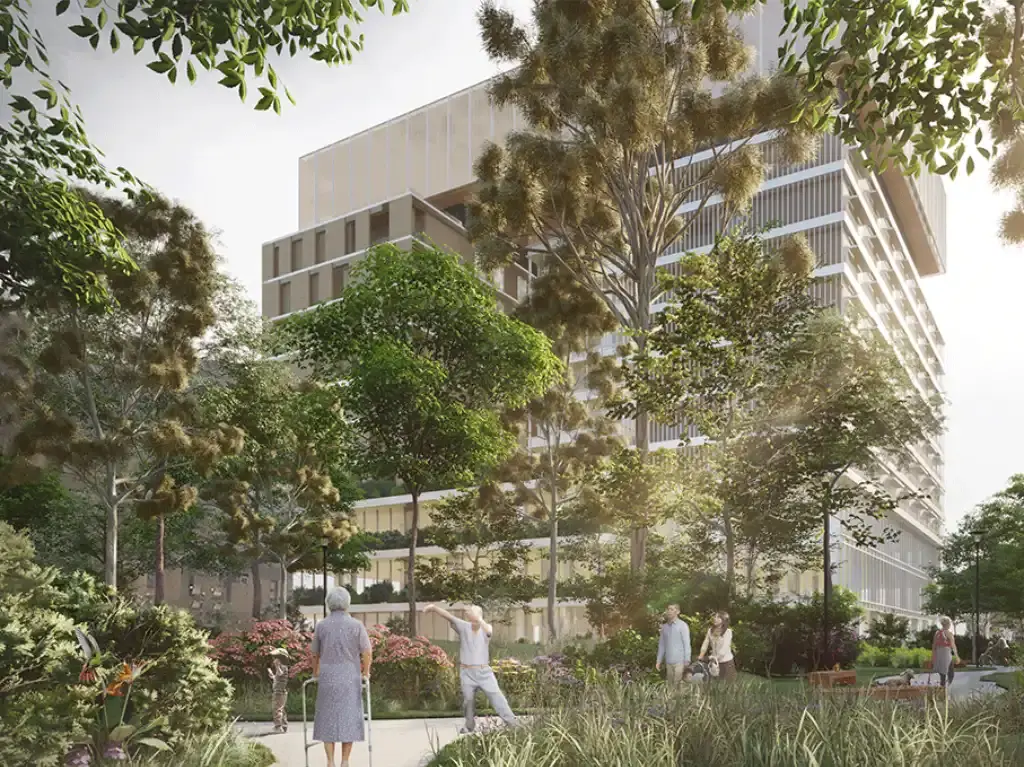 長青里:醫院是治療的中心,我們串聯了隔著林森路相望的小東公園,與位於敬業校區新規劃的五感庭園,共同打造出屬於高齡者的治療城鎮。