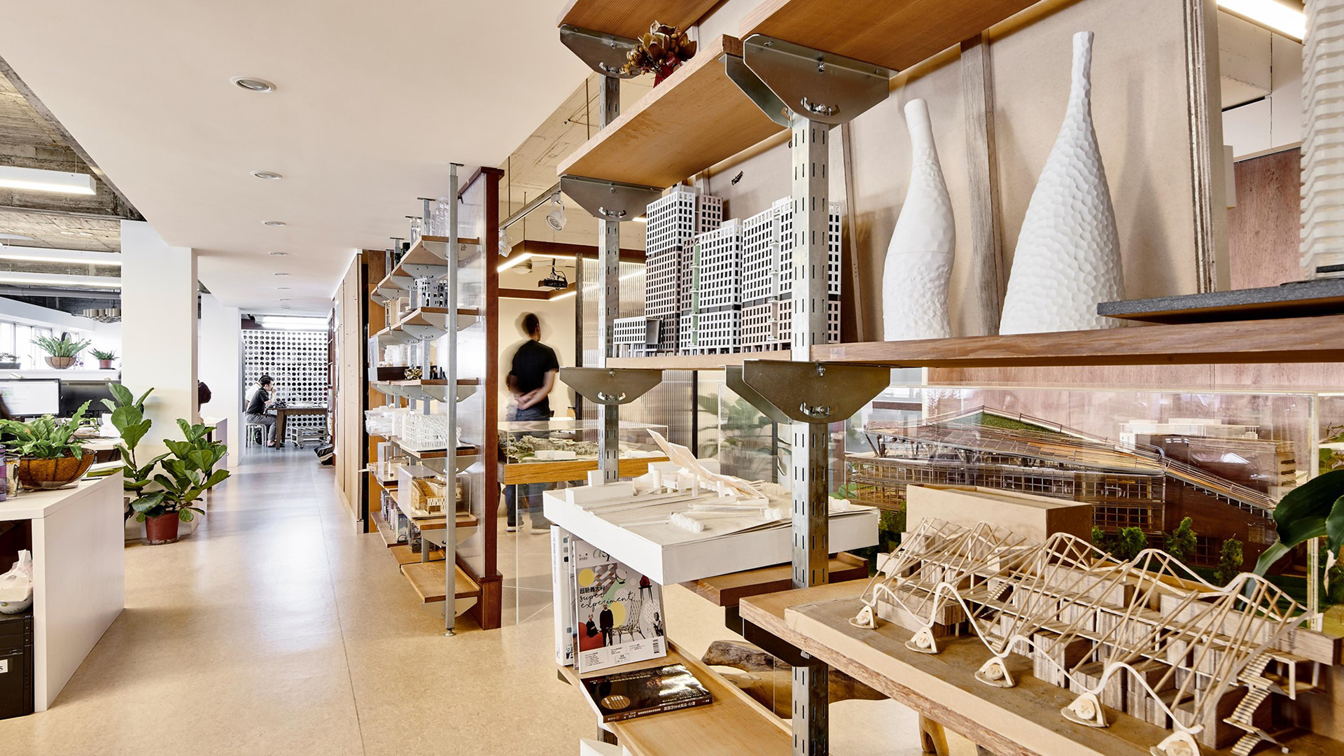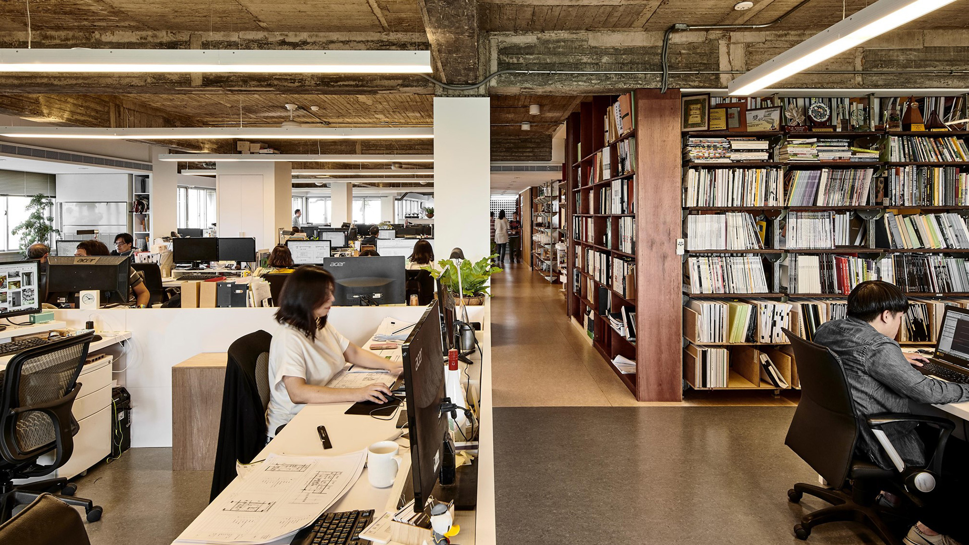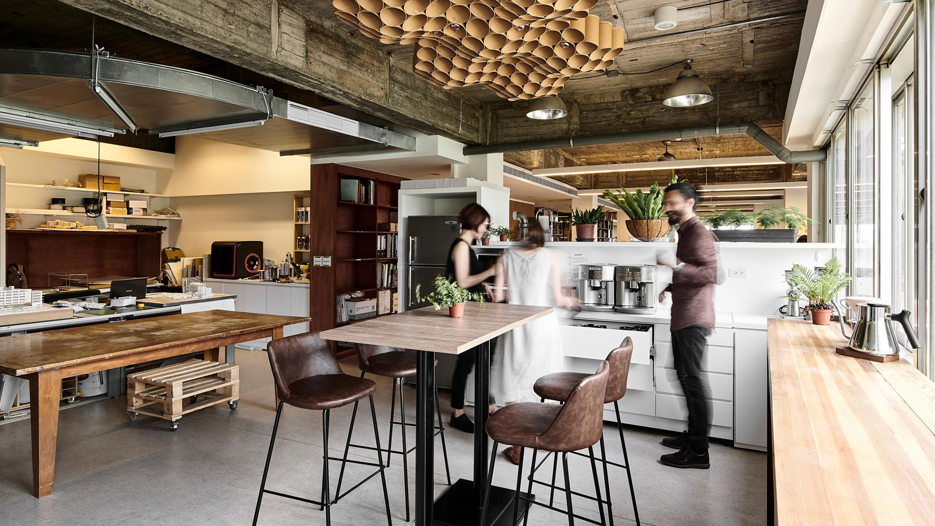 This interior design renovation was driven by three major factors: the use of green building materials (such as biodegradable flooring), the reuse of old furniture whenever possible, and the creation of an open-creative environment for work.