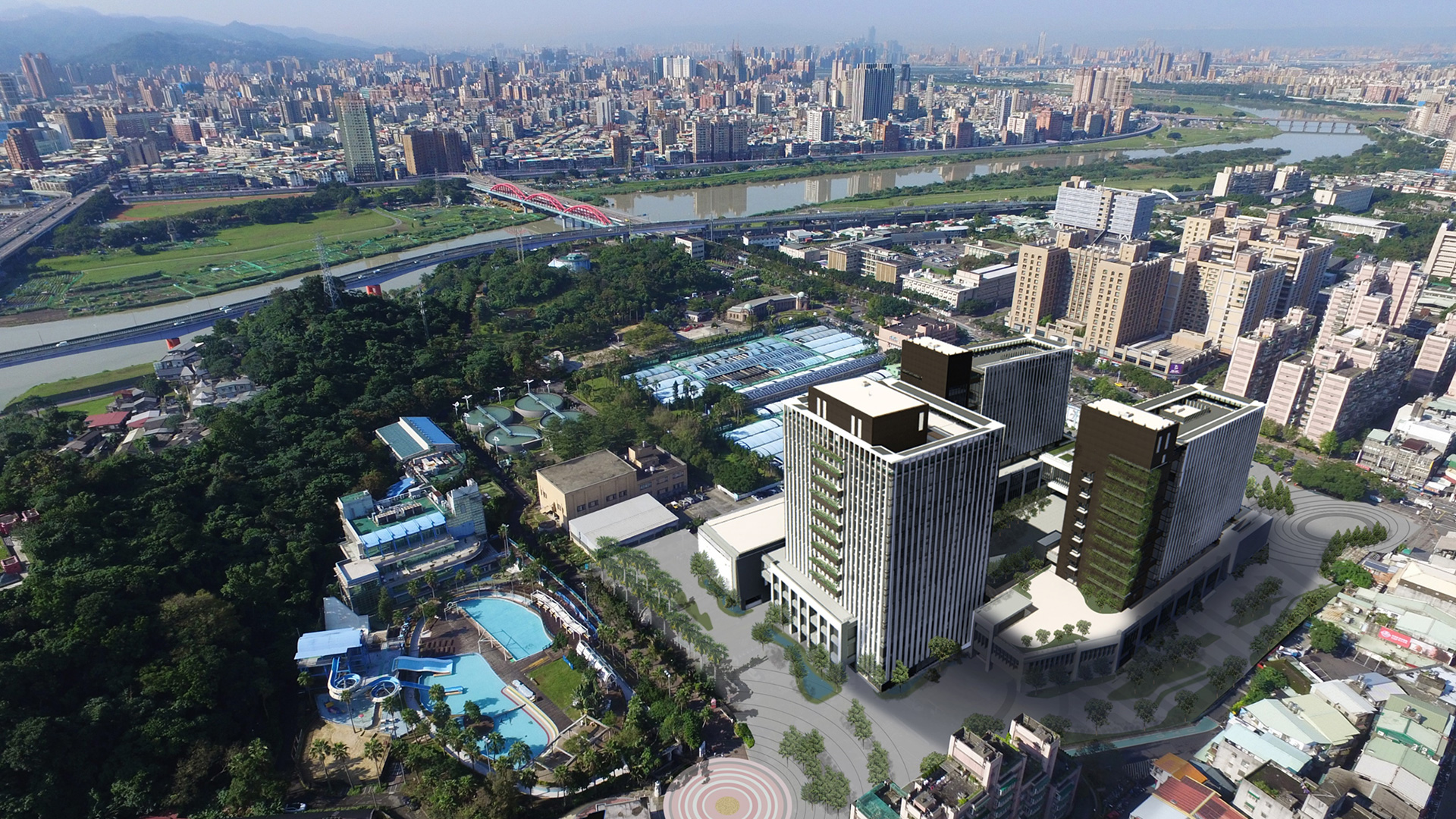 The Taiwan Water Corporation building is a multi purpose complex with public facilities on the lower floors and office on the towers. There is also a Water Science Museum on the west side of the site and a great area of landscape that enhances this neighbourhood in Taipei City.
