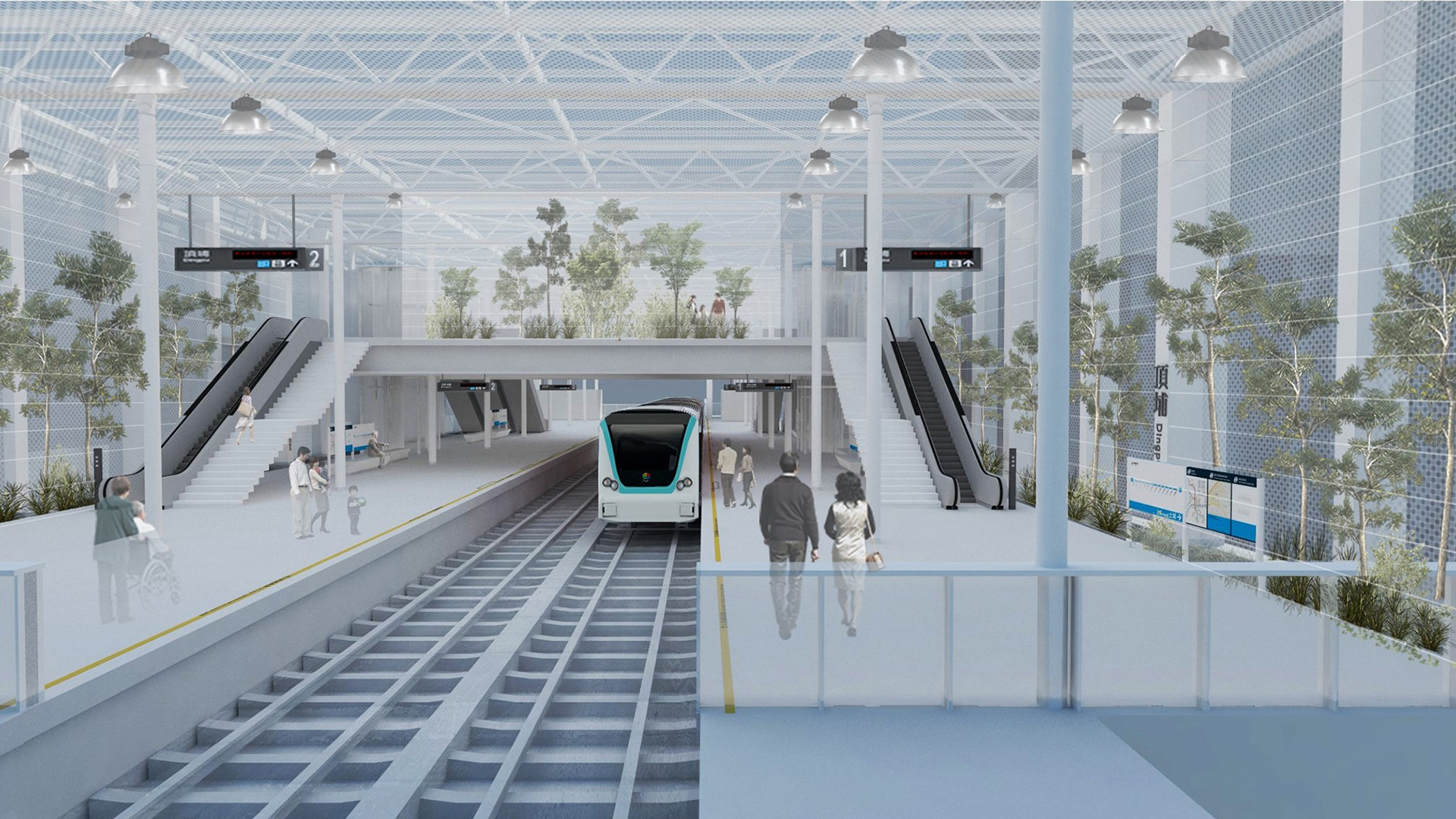 The station is designed to be lightweight, minimizing the visual impact of elevated structures while embodying the processes of local industries, aligning with the spirit of industrial innovation.