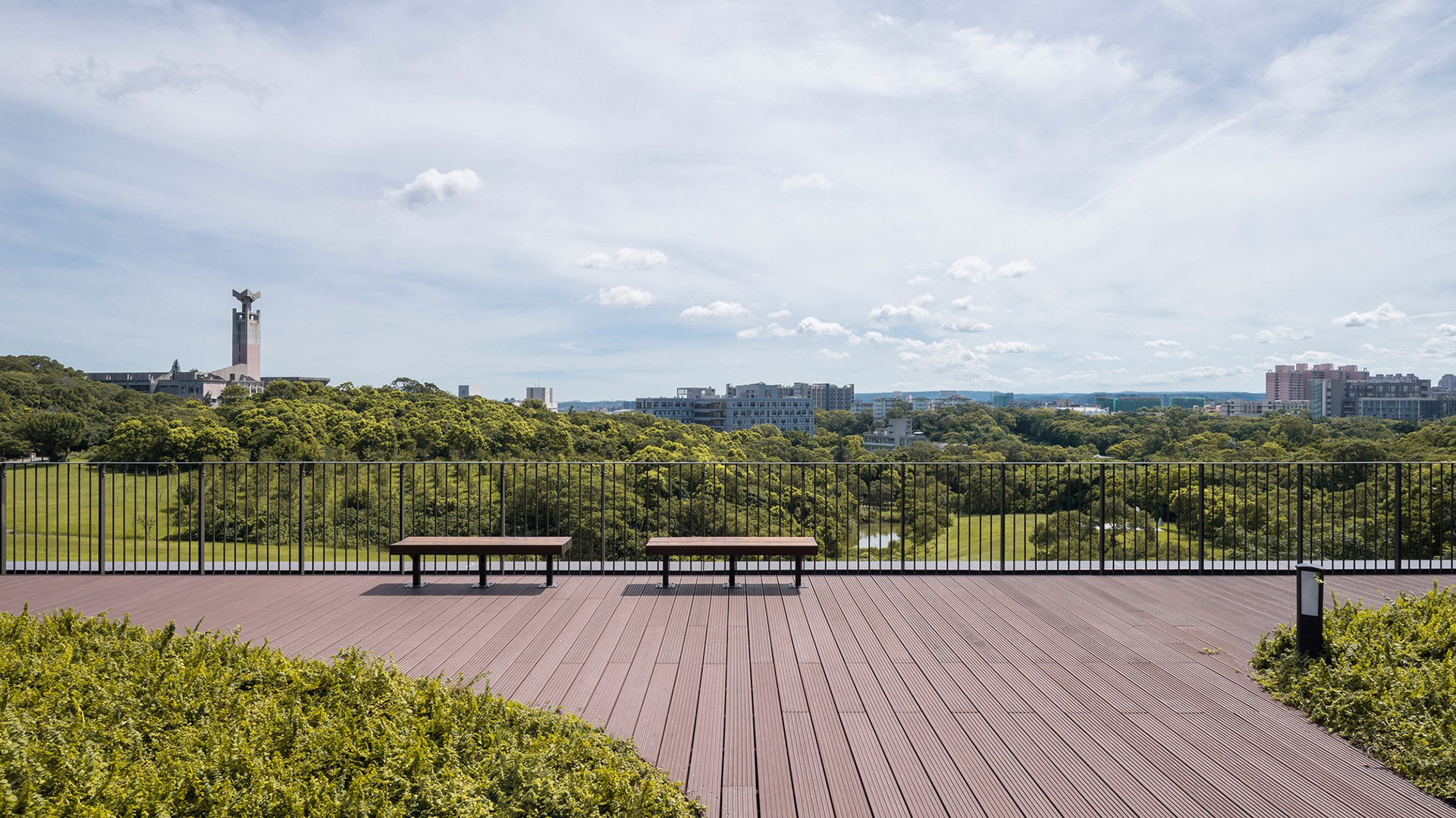 返回 清華大學創新育成中心 6 年度 2011 - 2016 落成 新竹 業主 國立清華大學 基地面積 8,482 ㎡ 總樓地板面積 19,885 ㎡ 狀態 完工 類型 教育 認證 綠建築鑽石級標章 與自然共舞 濕地為南校區之主要生態中心,在建築量體的配置上,將一整棟建築打散為ㄇ字型之前後兩棟,以低矮的三層樓群樓面對溼地,並將屋頂綠化作為與溼地生態走廊之連結,在立面上有層次的延伸綠地,降低對現有景觀之衝擊;安排九層樓高的主樓而面臨寶山路的一側,一方面延續現有台積館的天際線,另一方面阻擋馬路噪音進入校園。遵循永續校園規劃–善用綠色建築技術,達到節能減碳永續建築。 與現有環境之對話 與現有環境之對話 延續環境建築高度,地面層退縮以開放空間呼應台積館現有廣場,創造人員彈性的活動空間。透過群樓二樓、三樓之傾斜立面以之微反射玻璃表現濕地之美,可倒影清大校園美景綠樹與湖泊景觀相互輝映。 科技與生態 本基地冬天東北季風強勁,冬季風大時,可關閉群樓的底層空間以減少東北風穿越中庭空間,並大幅降低中庭風速,增進冬季中庭空間之舒適度。而夏天時,可打開群樓的底層空間,藉由導入季風進入,可增進夏季舒適度。