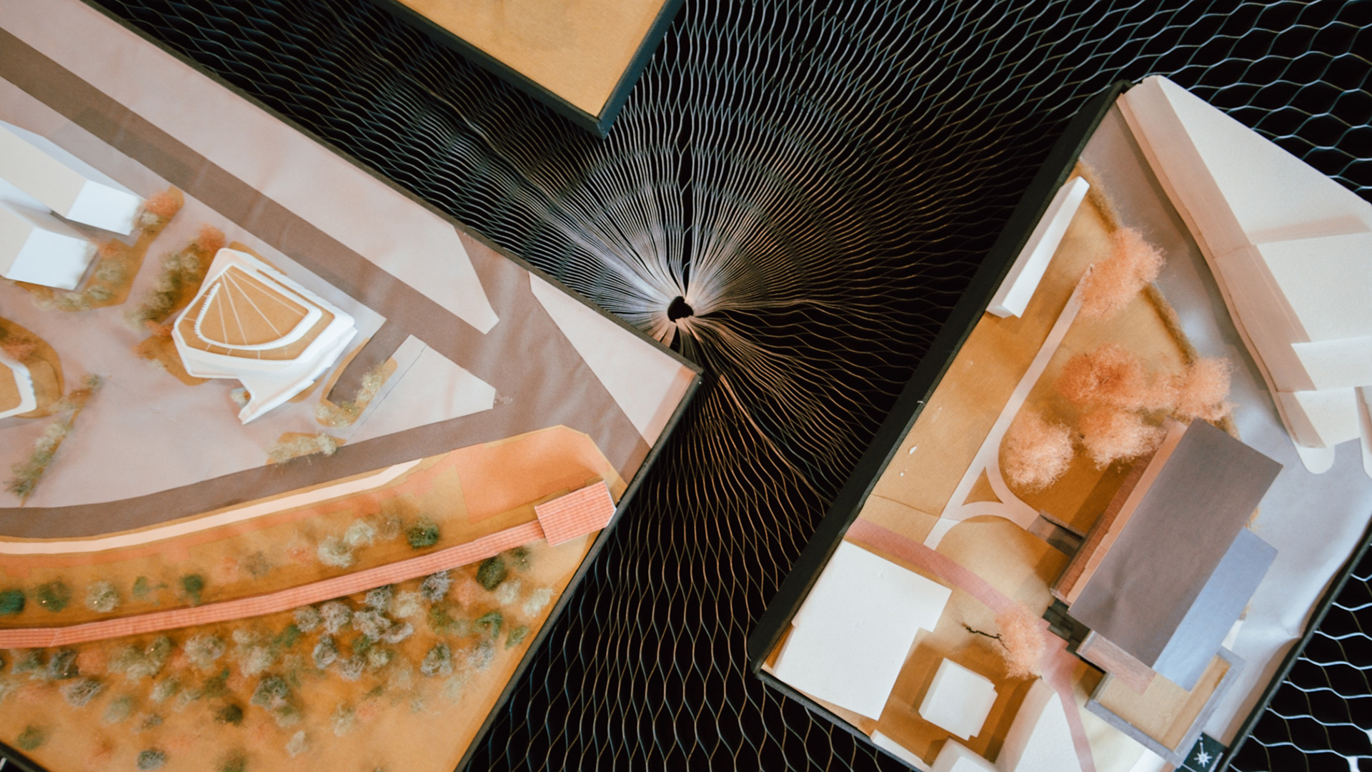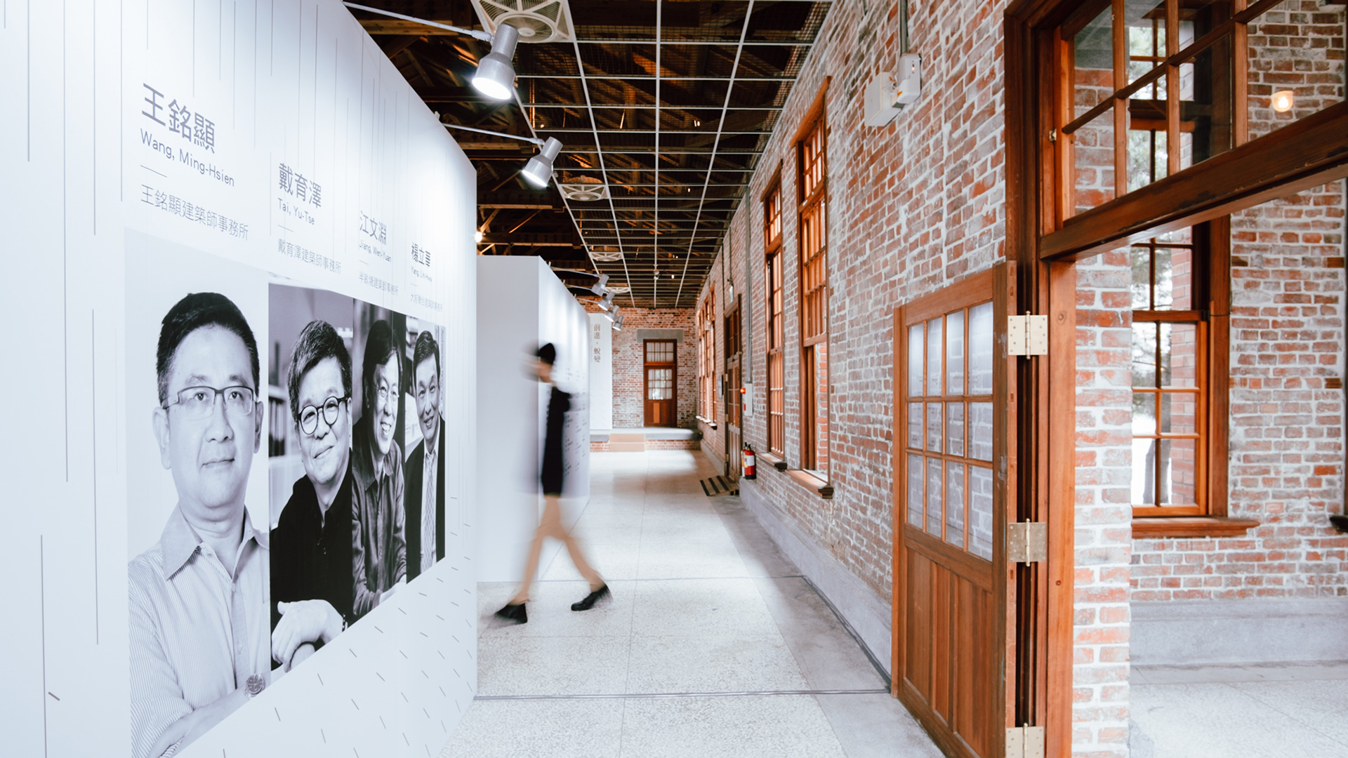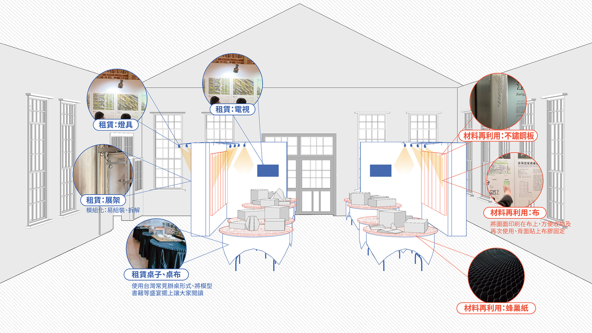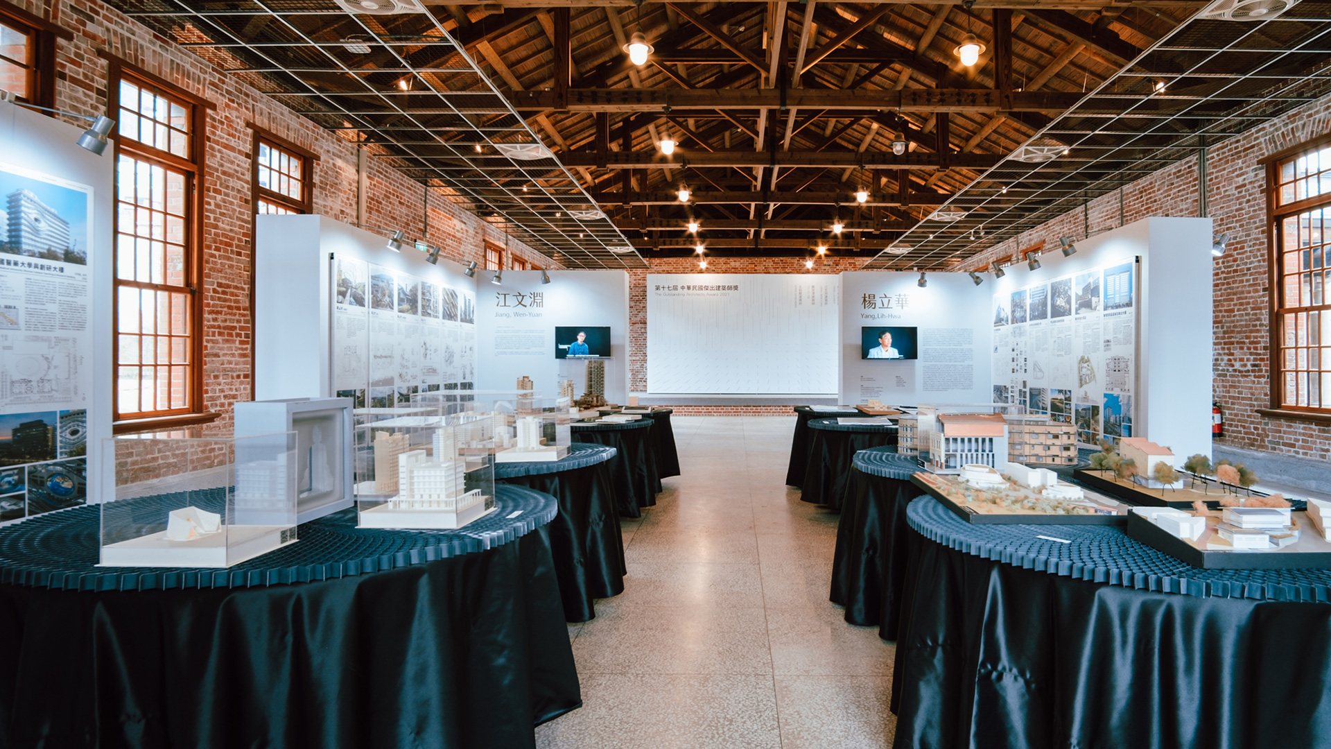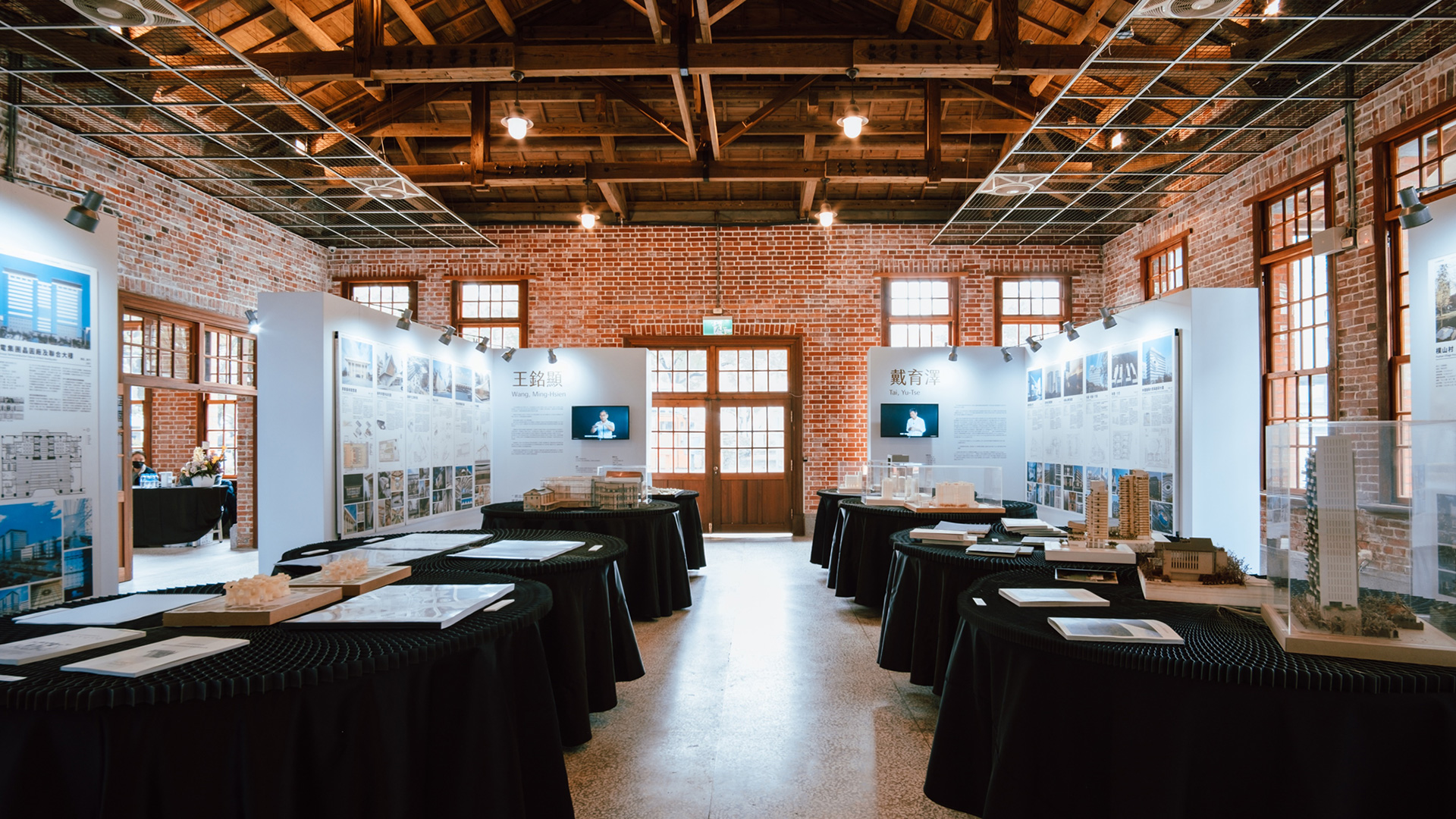 展區利用L型展板建立新的方形展覽空間,公平地讓參觀者可以同時看見四位建築師作品,並自由決定觀展動線。展場采用模矩化設計、易組裝拆解、這展覽撤場只花了2小時,并將展架等回復成原裝,可利於下次展覽的重複使用。