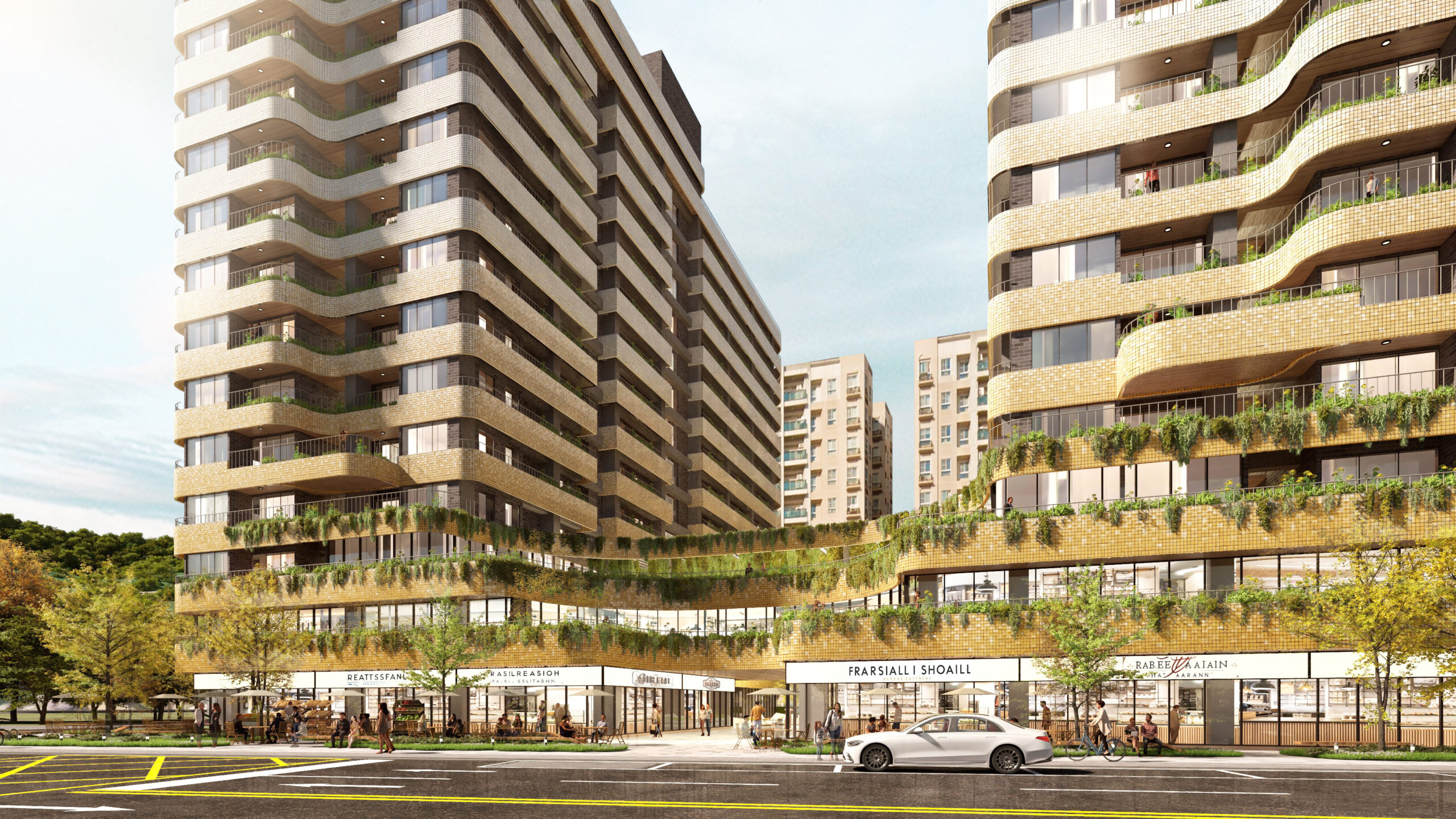 人的本質是與土地親近的。本案建築立面以關渡平原當地稻香意象轉譯為外牆立面表情,並揉合融入建築內部視覺設計,使建築融入在地溫暖風情,打造家的質感,及創造回到家的溫馨之感。