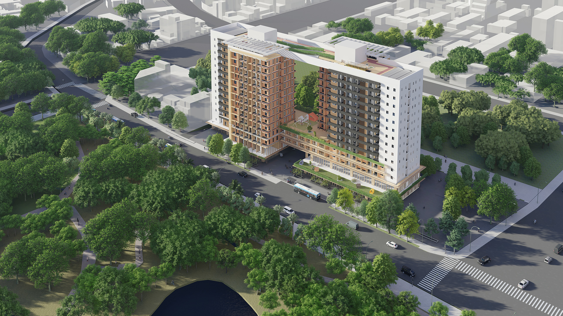 與基地關係之密切, 因代表了台南城門戶的意象。設計將”門”字及其意涵作為發想,配合風、視野、對應綠地,利用現代建築手法結合歷史古蹟為精神,以重現大北門,創造今日台南新門戶意象。