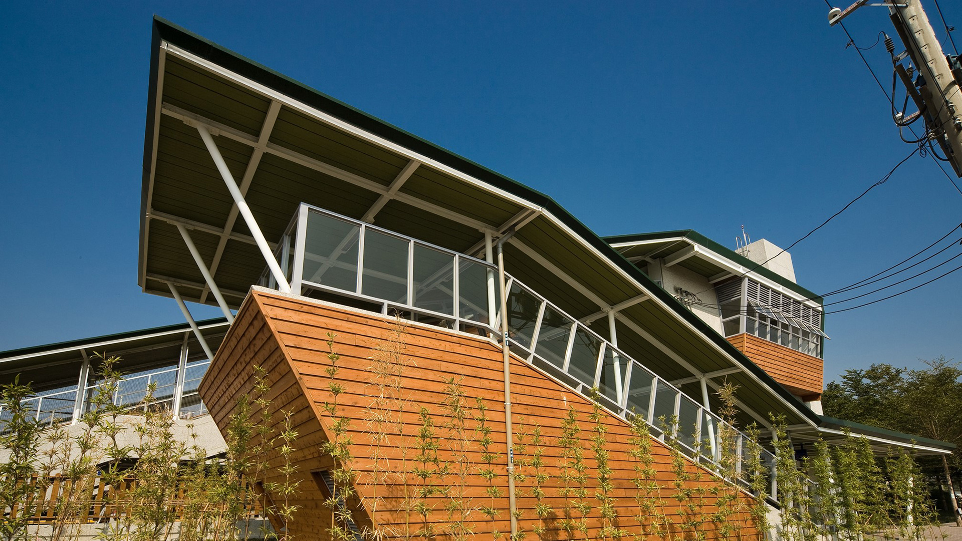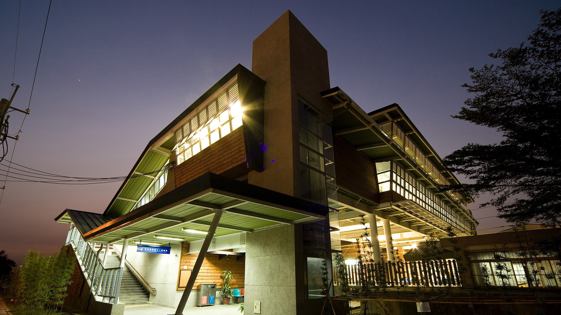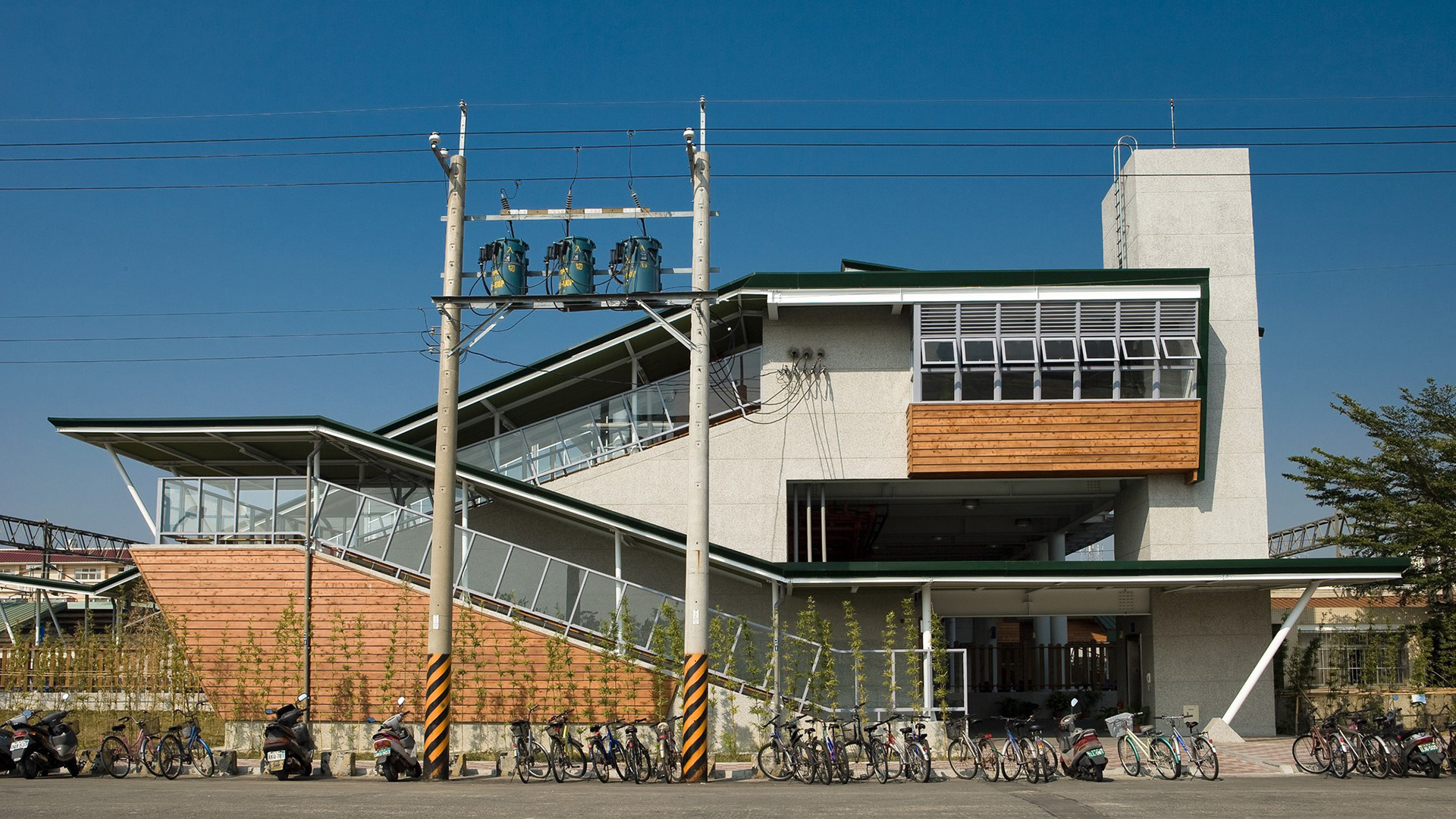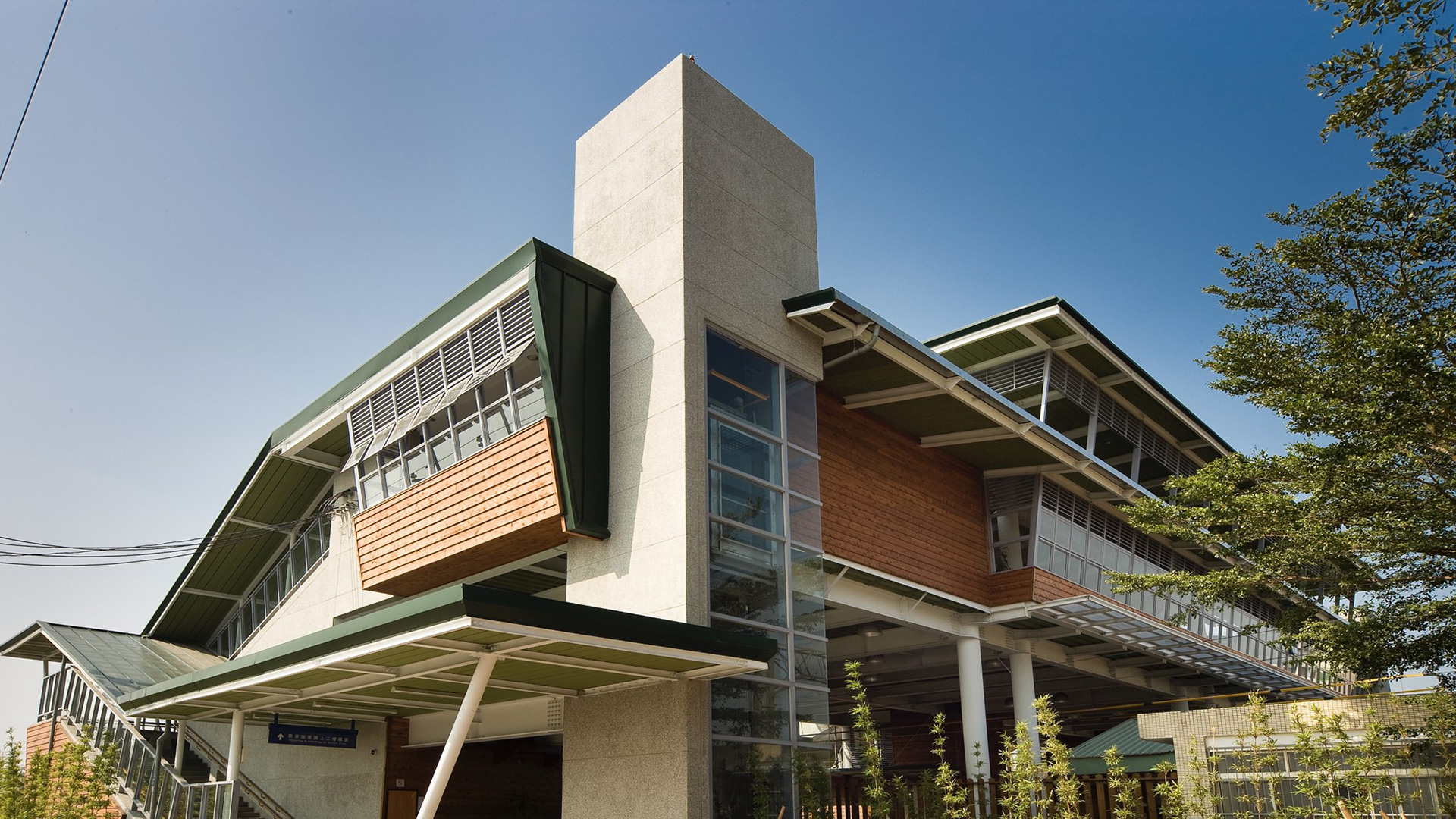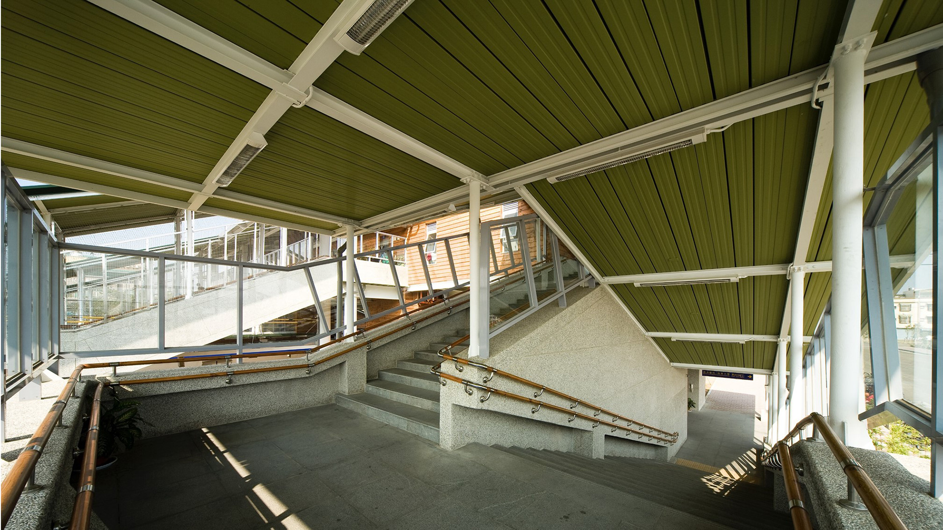 開放的大棚架屋頂,提供了一個自然蔽蔭與通風的舒適空間;雙層屋頂的設計,使隔熱效果達到最好;向南傾斜的屋頂,除能收集雨水再利用外,亦迎接當地炙熱的陽光,安裝太陽能板加以吸收。取自自然的建材可以節能減碳,成為車站永續經營的示範。