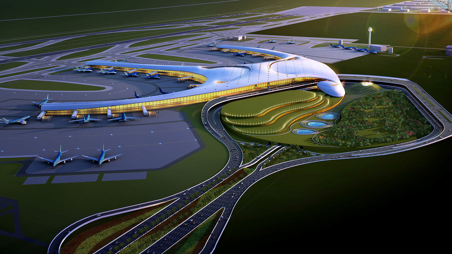 返回 越南胡志明市同奈省隆城國際機場(競圖) 6 年度 2016 落成 越南 業主 同奈省人民委員會、越南機場管理公司 基地面積 400,000 m² 總樓地板面積 415,348 m² 狀態 競圖(第四名) 類型 交通 / 競圖 合作 AYD 建築設計公司 位於胡志明市的 Long Thanh 新國際機場因應越南政府倡議之 “越南全球化國門城市 ” 計畫,將被設計建設成為世界一流水準的機場服務設施以及東南亞的國際進出的主要樞紐機場。設計團隊共同創造出一個綠色,高效的智慧航廈設計方案為來往旅客提供令人難忘的愉快旅程記憶。