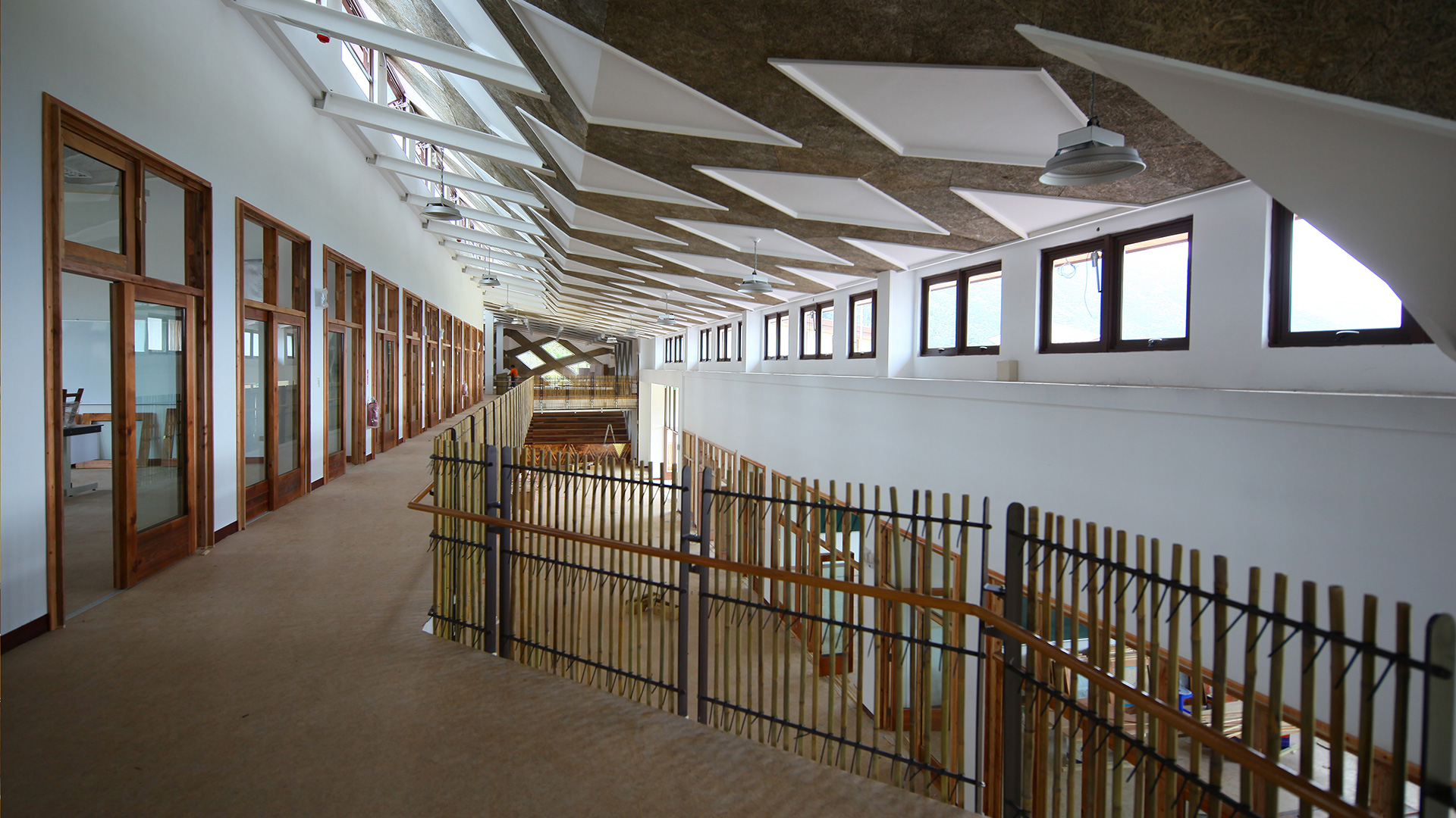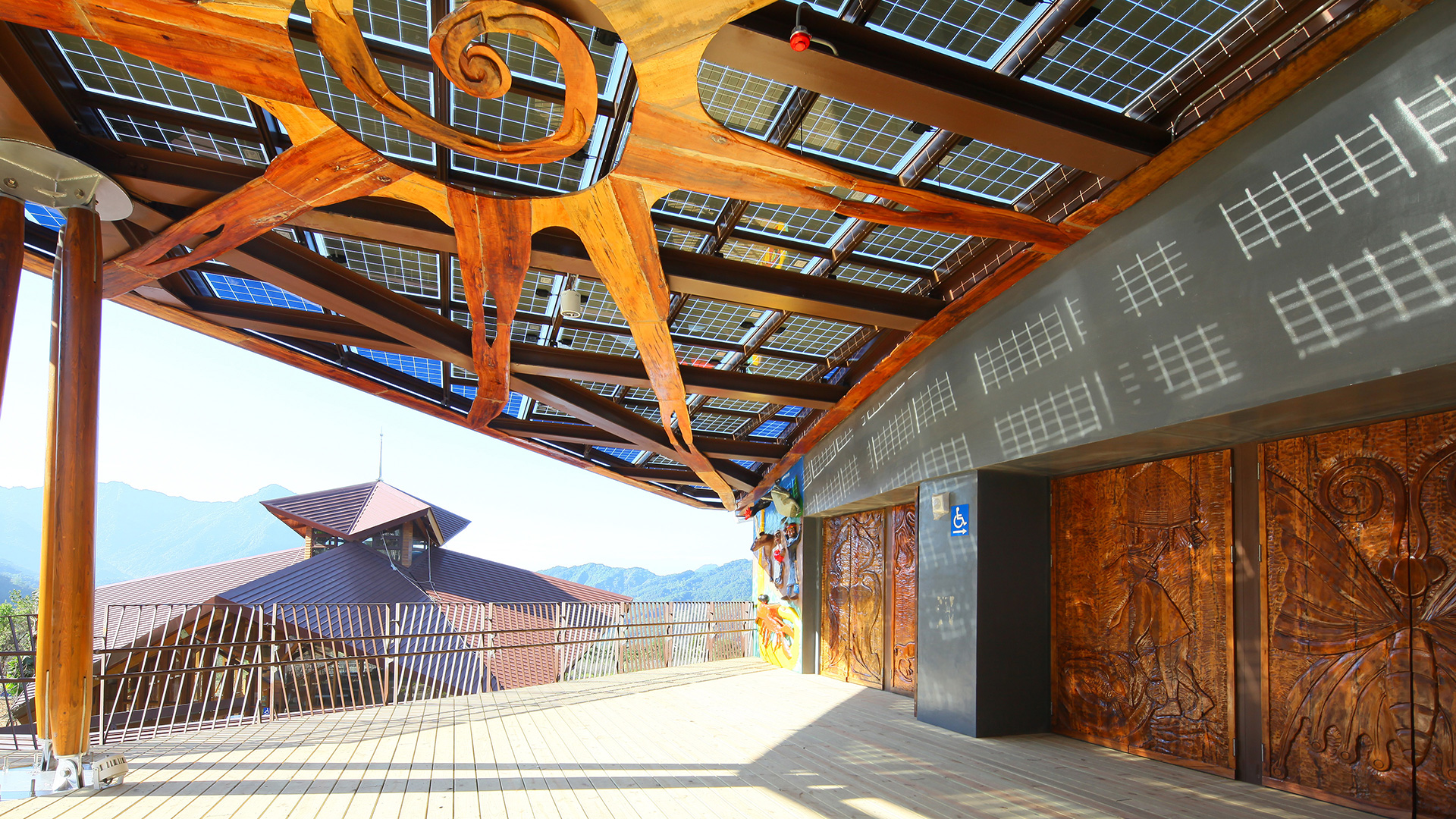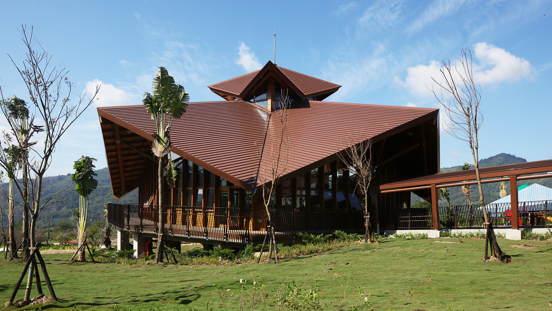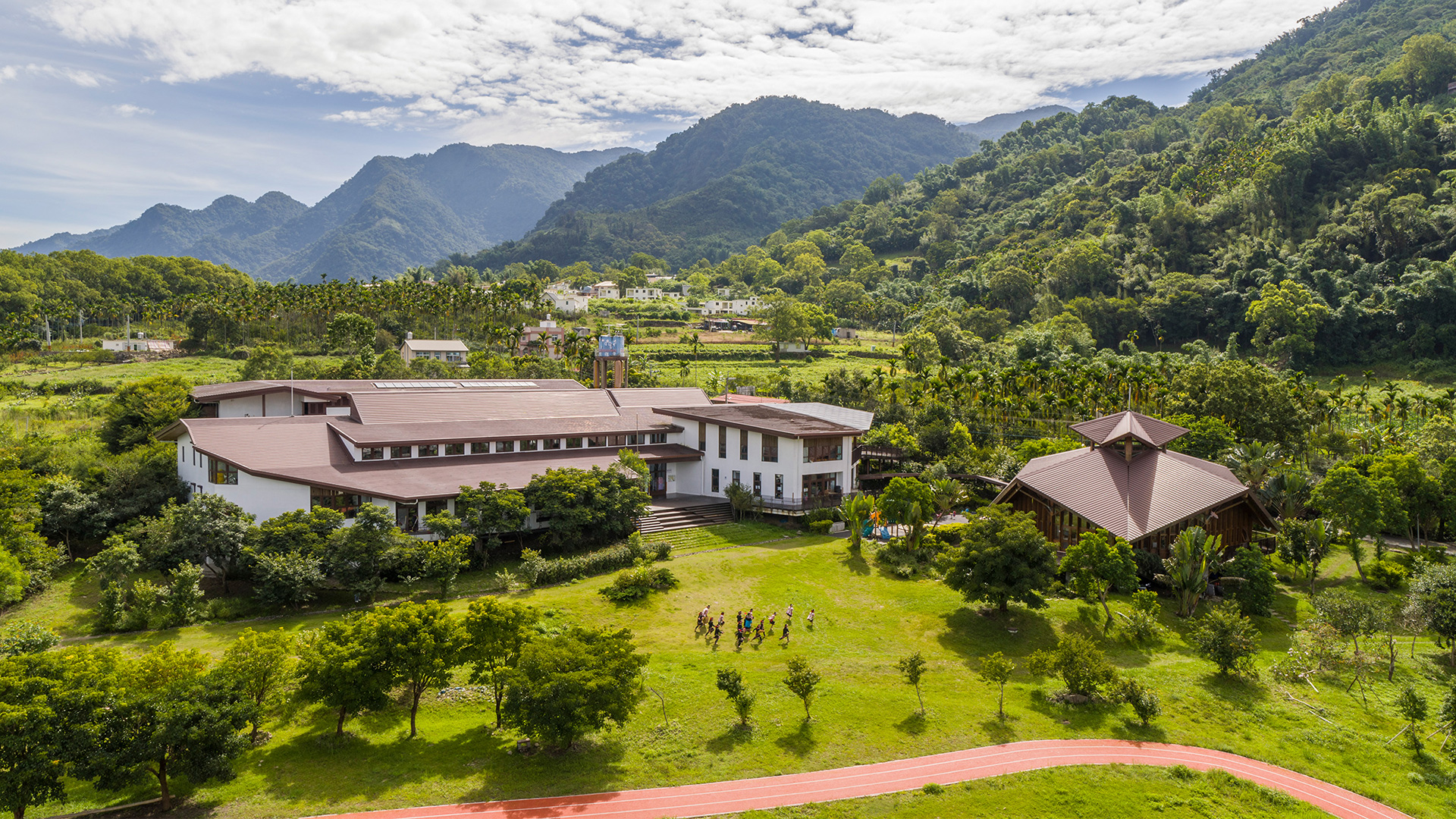 這樣的一個案子,對九典聯合建築師事務所是很大的挑戰,除了必須以更謙卑的態度去面對環境外,對於整體校園的規劃我們於設計時保留當地居民早期的建築語彙,校舍量體由布農族/鄒族空間轉化而來,將布農族的傳統住宅型態延伸,讓校舍成為一個有家的感覺的大房子,其中圖書館的設計概念更是來自鄒族男子集會所為發想概念,象徵代代智慧傳承的,結合現代賦予知識傳承的功能性目的,將圖書館位在校園入口中心位置,造型像開遍民權平台的曼陀羅花,提高學童使用可及性及未來成為一個學校及社區培養閱讀文化的重要場所。
