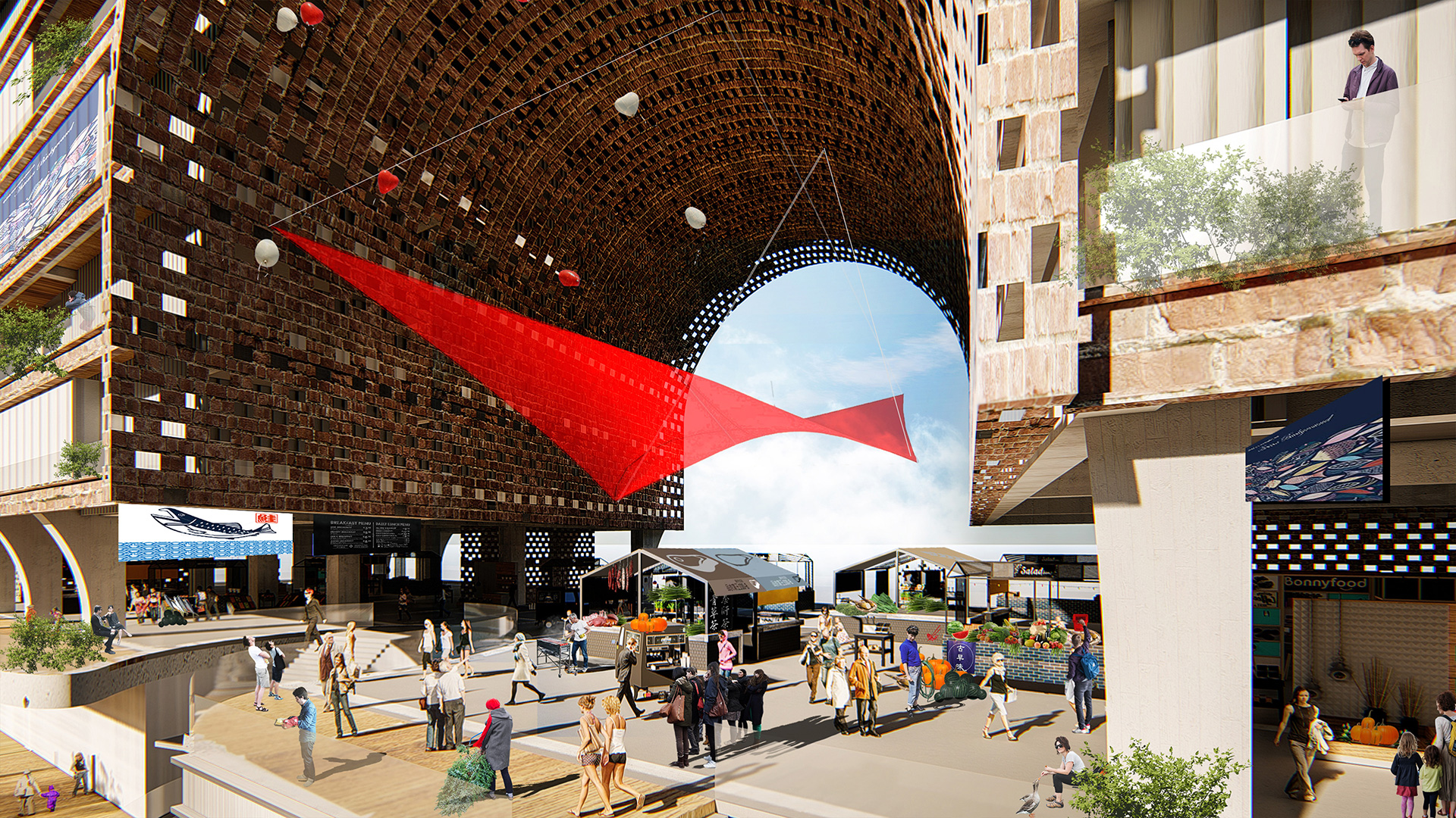 返回 鳳山車站開發大樓 9 年度 2017 落成 高雄 業主 交通部鐵道局 、台灣世曦 基地面積 18,300 ㎡ 總樓地板面積 43,030 ㎡ 狀態 施工中 類型 交通 車站作為一座古城的街巷延續 串連起鳳山文化脈絡新意象 鳳山車站位於台鐵高雄鐵路地下化工程之鳳山車站位置,西臨高雄、東接後庄火車站。在鐵路地下化後,打通了原有阻隔城市南北發展的車站量體,翻轉了原被視為都市背面的鐵道廊帶──地下化工程帶來的正是扭轉都市發展的契機,而鳳山車站更正是處於這樣的角色:背負著鳳山人們的期待,冀望能為鳳山這悠久歷史的古城,激發更多經濟文化上的想像。 鳳街、縫接──屬於市民的空間 鳳山車站以在地古城街巷脈絡作為都市風貌主軸,以鳳山街巷的概念,將車站低樓層開放空間串連延續進都市紋理,東西以空橋綠廊連接地下化後的鐵路綠廊,南北面以大草坡與大拱下穿廊回應串連古代水路曹公圳軸線,整體打造一個「四軸之心」概念,讓鳳山車站──西串高雄鐵馬道、東聯濕地生態廊、南進鳳山文化城、後展新興生活圈,成為鳳山城的都市新願景。 登城望遠──用在地產業引領空中鳳城 延續鳳山的都市街巷概念,車站在三樓營造半戶外營業空間層,以舊時打鐵街、家具街、舉人巷及草店頭等百工百貨街市(鳳山Cluster)風貌,為鳳山火車站注入在地產業的活力,使商業空間回歸到市民尺度,藉此帶動地方發展。此外,鳳山車站更將引入屬於鳳山人的「侯孝賢」電影文化產業概念鏈,除了提供民眾休閒娛樂,更能結合電影劇場與實驗片場,帶動地方展業轉型發展;而屬於青年人的Start-Up青創中心,更可為在地年輕人提供一個發想創業深耕的良好地基。 賓客盈門、門庭若市──追憶古城風情 建築整體風貌以鳳山古城的舊時城牆竹荊磚瓦砲台,融合鳳儀書院的燕尾屋脊,冀望呈現當年北門舊址、天下第一關的鳳山北門口──那火車進出站的蜂擁情境就有如昔時出關入關、熱鬧喧囂的北門口集市樣貌;地方人們能遊逛在曹公圳草坡、鐵路空橋綠廊,悠然步上各層開放空間、綠化平台,一如當年行走在砲台城牆、登高望遠,一覽鳳山城市風情、追憶當年古風情懷。 榮獲獎項: 第17屆 優良工程金安獎-佳作(2023) 推動職業安全衛生優良工程金安獎