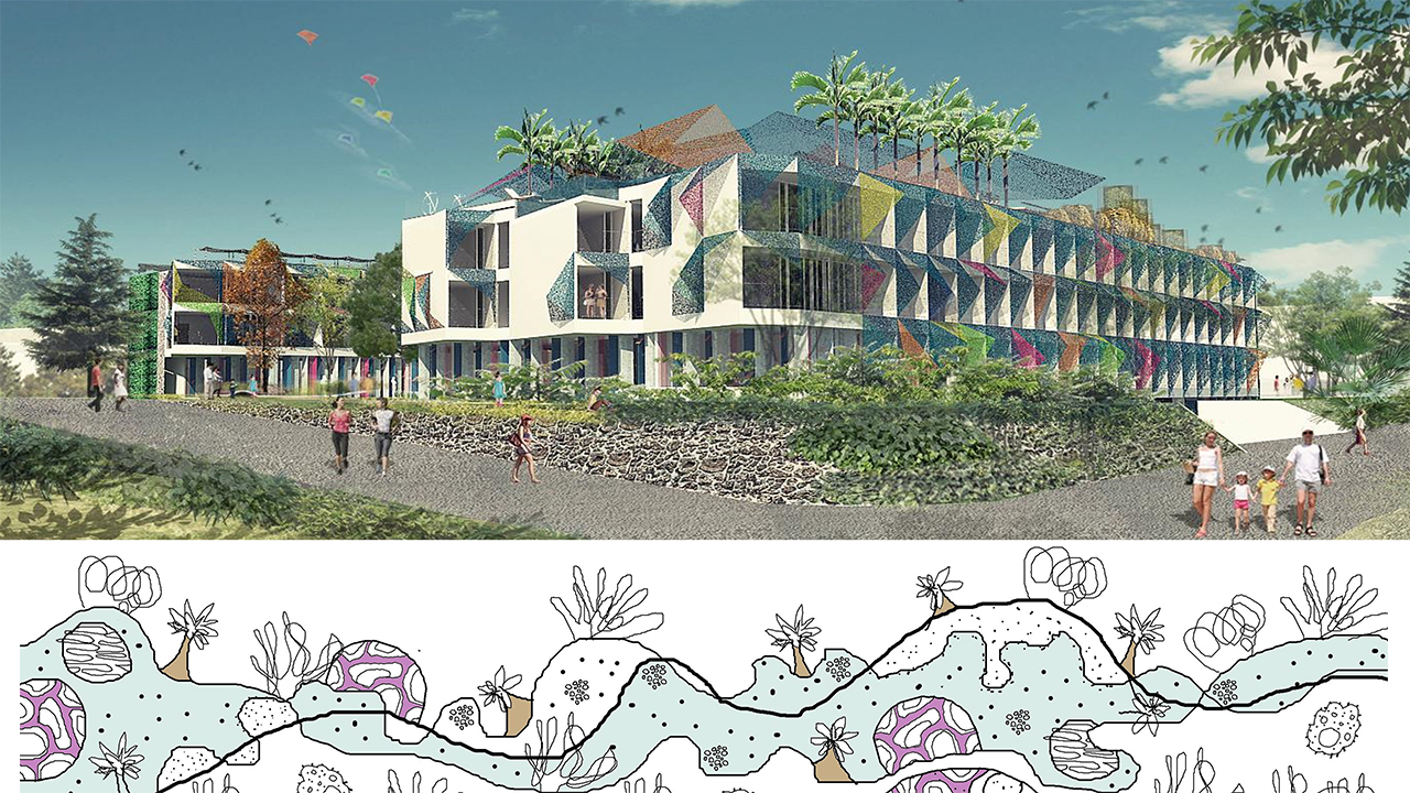 台灣的海域面積為陸域面積的6倍,擁有豐富的海洋資源;墾丁國家公園更是我國七座國家公園中,第一個規劃涵蓋海域的國家公園。「珊瑚礁」是恆春半島生態系中最重要的主角,在200公尺深的大陸棚之潮間帶孕育出無限的生態多樣性。墾丁公教會館建築設計讓旅館扮演如珊瑚礁般共生體系的主角,創造與墾丁國家公園以及屏東大生態系的交流,有機共存。